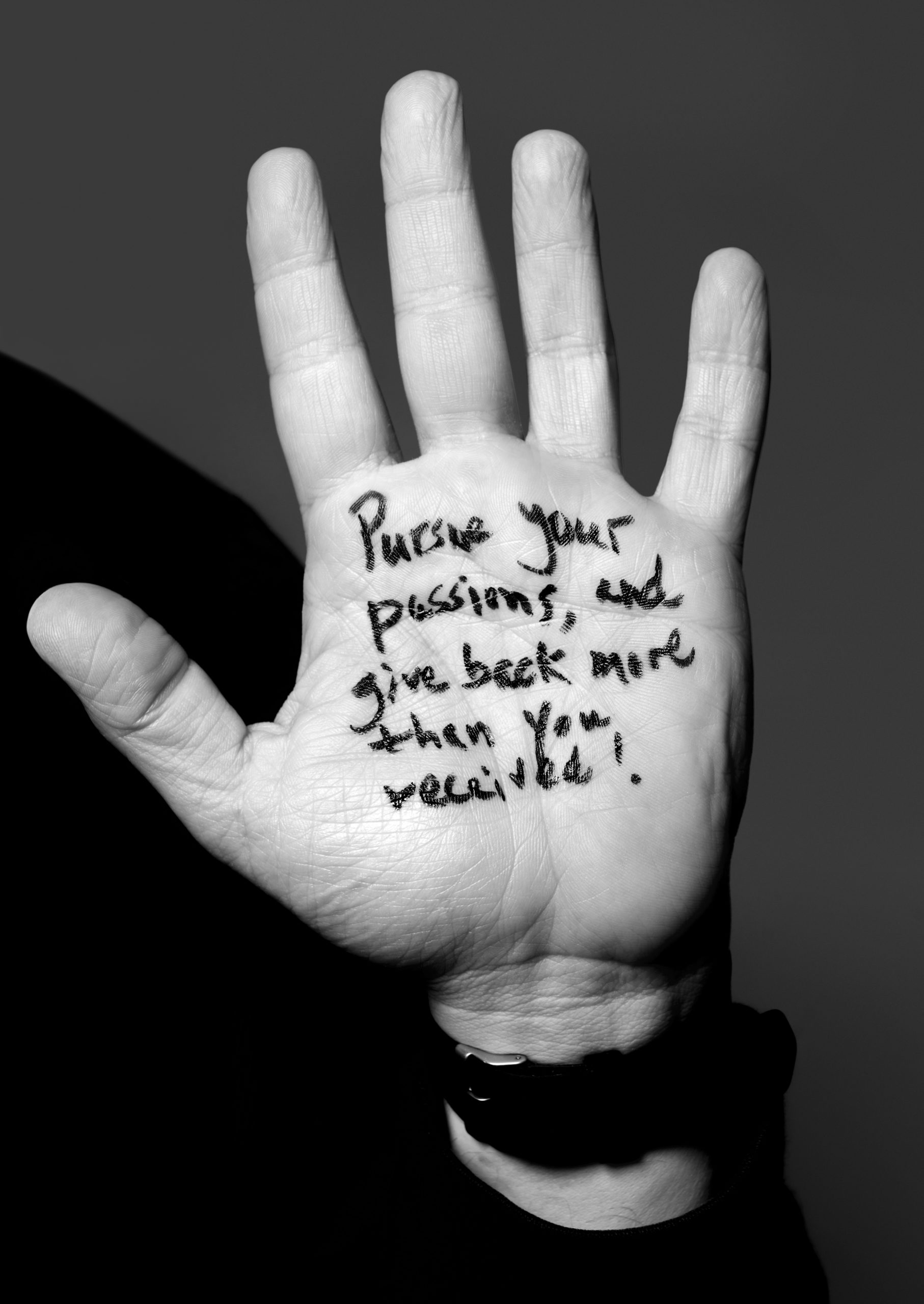 | „Die Leidenschaft für das, was Wissenschaftlerinnen und Wissenschaftler tun, ist bewundernswert. Ebenso ihre ungeheure Beharrlichkeit, ohne die sie Fehlschläge nicht verarbeiten könnten. Ich sehe die Forscherinnen und Forscher deshalb auch als Vorbilder für junge Menschen. Mir geht es darum, Wissenschaft in der Gesellschaft sichtbar zu machen“, sagt die Fotokünstlerin Herlinde Koelbl über ihr internationales Projekt. Für ihre Porträts bat die Fotografin die Wissenschaftlerinnen und Wissenschaftler einen für sich wichtigen persönlichen Leitsatz, eine Formel oder eine Idee auf die Hand zu schreiben. Damit macht sie die Menschen hinter der Forschung nahbar und schafft eine Verbindung von (Porträt‐)Kunst und Wissenschaft. |