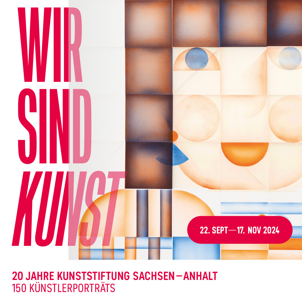 Die Jubiläumsausstellung „WIR SIND KUNST“ feiert 20 Jahre Kunststiftung Sachsen-Anhalt – und diejenigen, die im Mittelpunkt der Förderung stehen: Die Künstlerinnen und Künstler. Für die Schau wurden 150 Stipendiatinnen und Stipendiaten und Akteure geförderter Projekte um Selbstporträts gebeten – in Malerei, Grafik, Fotografie, Textilkunst, Bildhauerei, Schmuck, Film oder auch als literarische Selbstbetrachtung. Ein umfangreiches Programm mit Lesungen, Vorträgen, Konzerten und Veranstaltungen begleitet die Ausstellung.