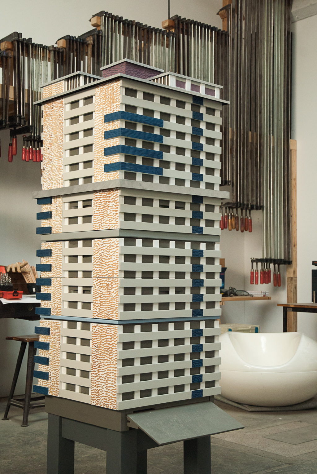 Das Bienenpunkthochhaus entstand mit Hilfe einer Projektförderung der Kunststiftung des Landes Sachsen-Anhalt. Als Metapher für effizientes Wohnen von Bienen schnitzte Marc Fromm ein Hochhaus, angelehnt an die 12-stöckigen Punkthochhäuser in Halle-Neustadt. Marc Fromm denkt das Thema Behausung für Bienen neu. Unser alltägliches Bild von Bienen, das Leben von vielen Individuen auf engstem Raum, erhält dadurch eine ganz neue Wahrnehmung.