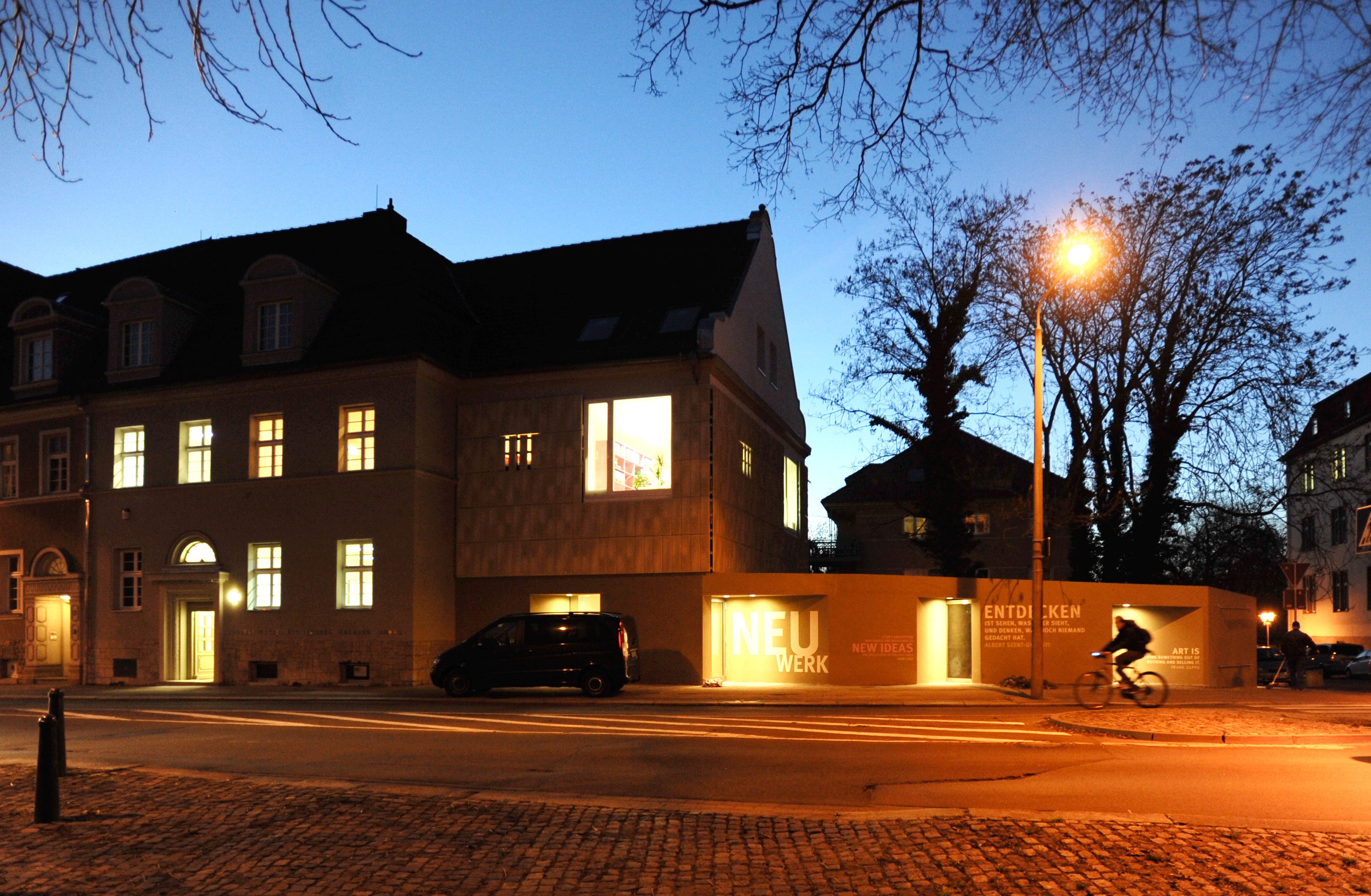 Der Umbau durch AHM-Architekten umfasst unter anderem einen zweigeschossigen Anbau an Stelle der früheren Terrasse, der sich zur Präsentation einer großen Vielfalt von möglichen Arbeits- und Präsentationsformen zeitgenössischer Kunst eignet und den entsprechenden kuratorischen Anforderungen Rechnung trägt. „Neuwerk 11 hat sich in kürzester Zeit als Forum für das aktive Kunstschaffen etabliert“, resümiert die Direktorin der Kunststiftung, Manon Bursian. „Ganz bewusst haben wir gemeinsam mit den Architekten einen Raum entwickelt, der eher Werkstattcharakter hat. Es ging um einen Arbeitsort für die Stiftung und die von ihr geförderten Künstler. Wie gut der Ort, den AHM-Architekten am Neuwerk 11 geschaffen haben, funktioniert, haben die Ausstellungen und Veranstaltungen der letzten Monate gezeigt. Hier hat die vielfältige Kunstlandschaft Sachsen-Anhalts eine angemessene Heimat in anregender Atmosphäre gefunden.“