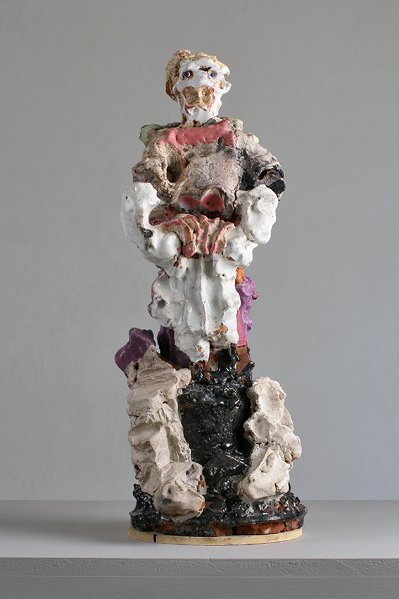 Martin Neubert, Brüllwanst, 2012, Ziegelton, Glasur, Kunststoff, Glas, 57 cm hoch