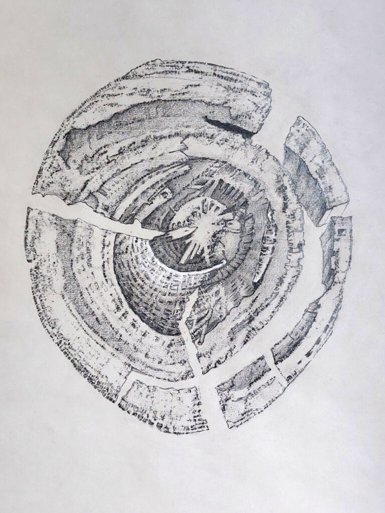 Buhnenkopf 4, 2024, Frottage, Zeichnung, 64 x 48 cm