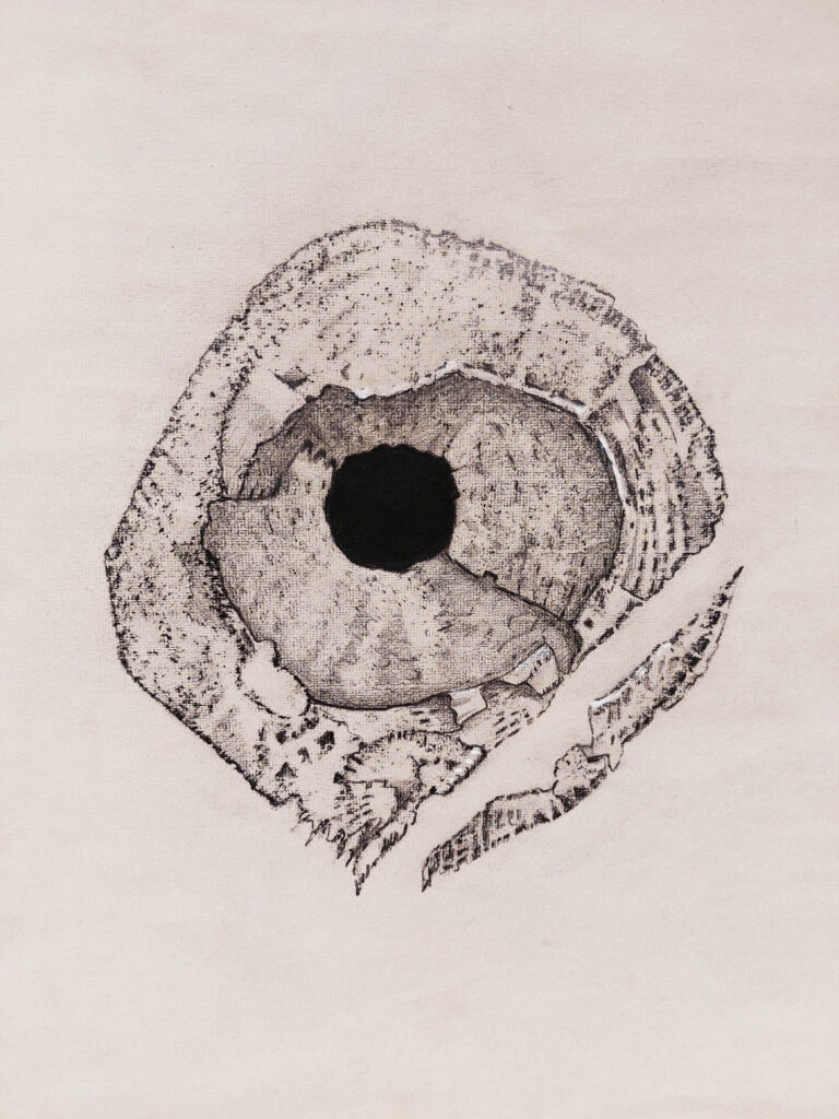 Buhnenkopf 3, 2024, Frottage, Zeichnung, 64 x 48 cm