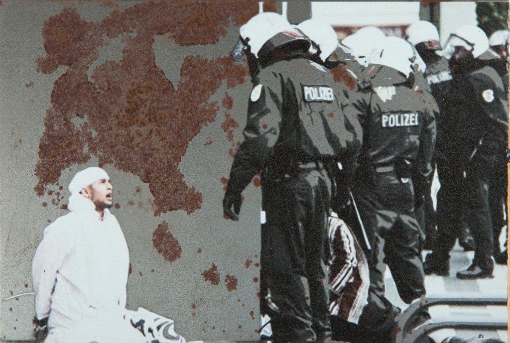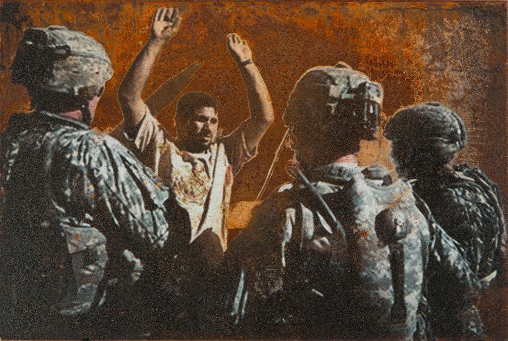 Gefangennahme (3), 11 cm x 16,5 cm c-print und mixed media auf Stahl, 2013/14