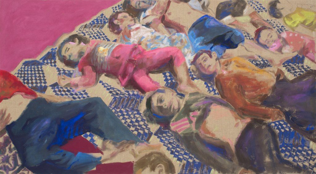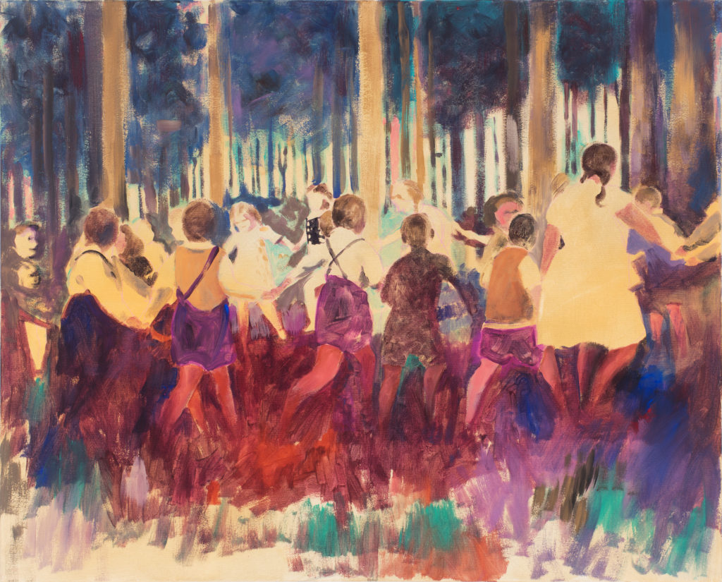 „Tanz im Wald“, 95 cm x 125 cm, Leimfarbe, Leinwand auf Keilrahmen, 2018. Repro©Joachim Blobel