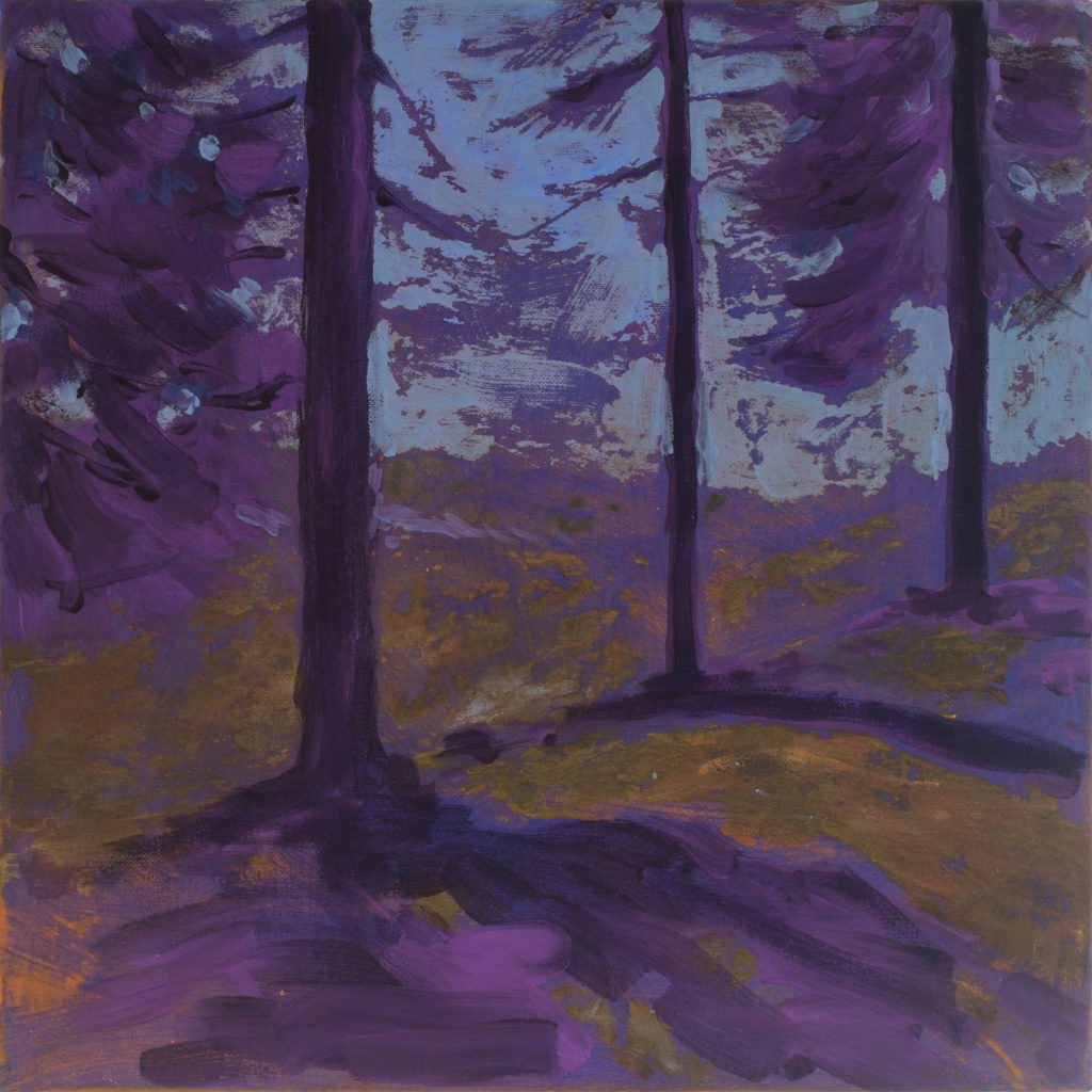 „Kleine Harzlandschaft“ Lila, 40 cm x 40 cm, Leimfarbe, Leinwand auf Keilrahmen, 2018. Repro©Joachim Blobel