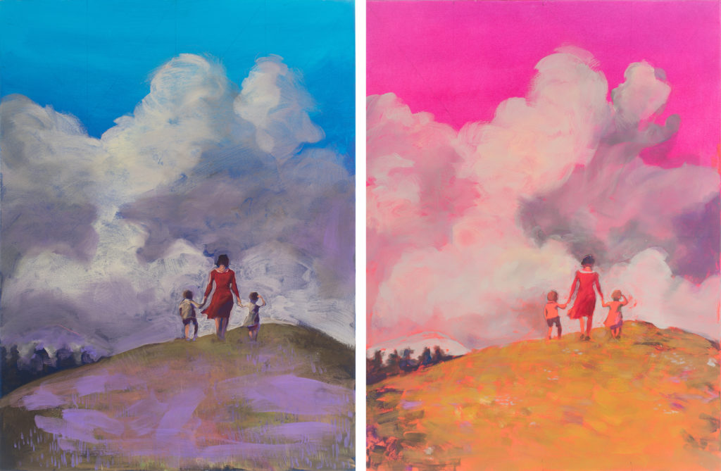 „Die Mutter“ (blau und pink), Zwillingsbilder,