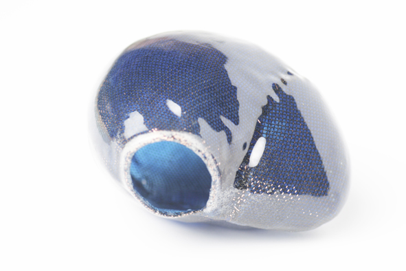 Halsschmuck l Tunnel ( noch unvollendet), Kunststoff, Stahlgaze, Schnur, Schwenkguss, 2013
