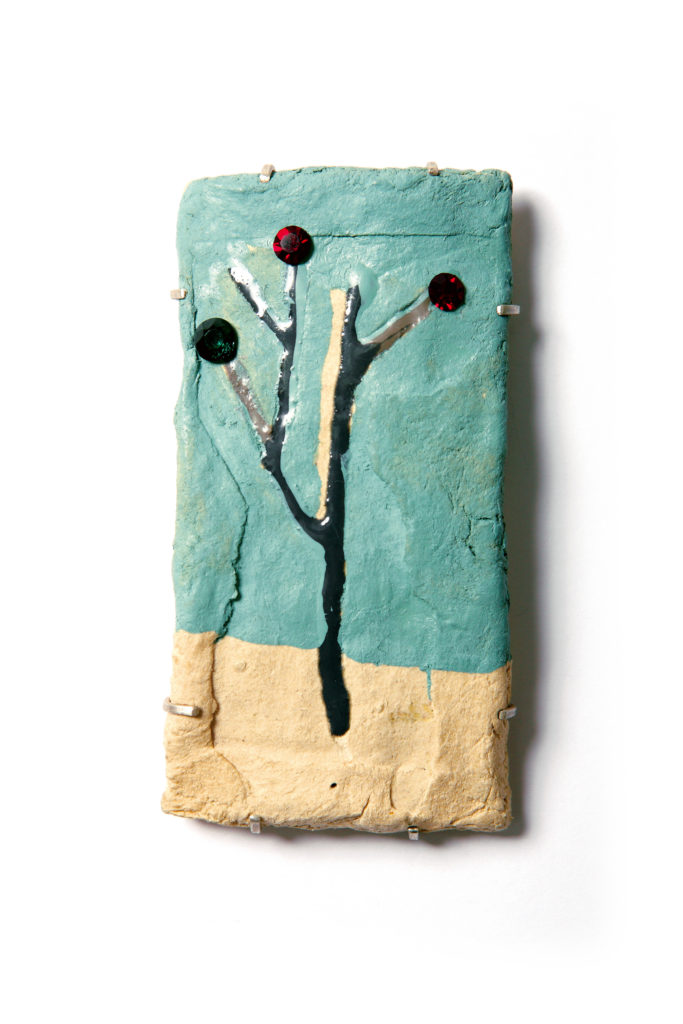 4 Broschen, 2010 - Wellpappe, Kunststoff, versch. Steine