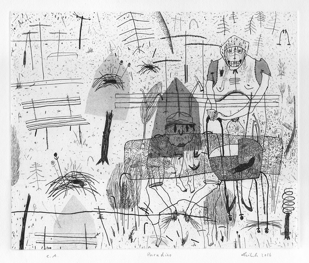 Zeichnungen von Sara Möbius und Malerei von Eugen Kunkel