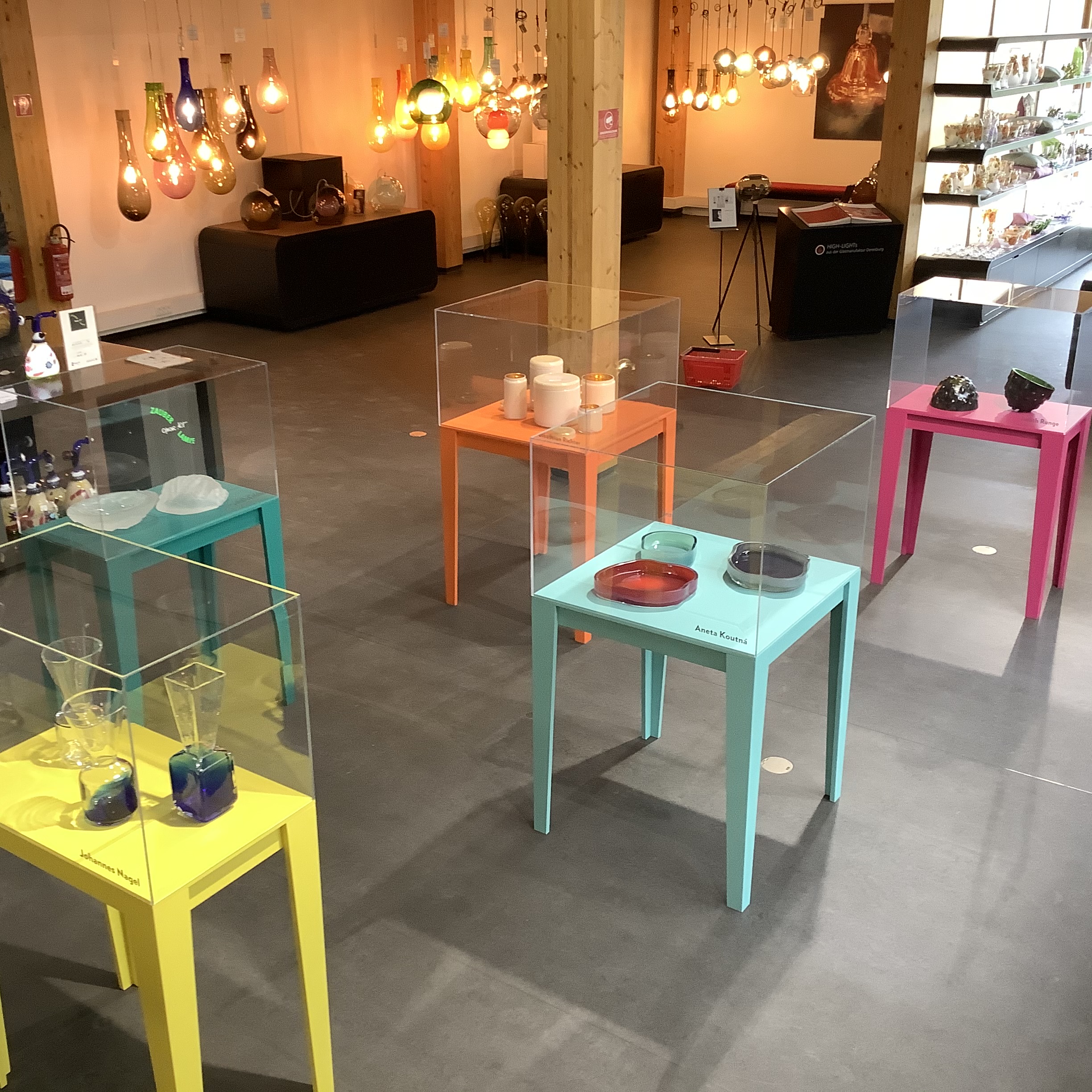 Glasobjekte des Wettbewerbes "Weltkulturerbe trifft auf Immaterielles Kulturerbe" von Aneta Koutná, Judith Runge, Julia Schleicher, Sebastian Richter und Johannes Nagel werden gezeigt