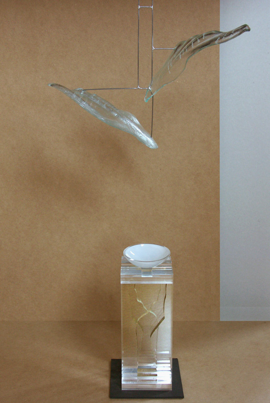 Die Wettiner Kirchgemeinde war mit der Wahl von Leus Arbeit mehr als zufrieden. Die Gestalt ist vom Barock inspiriert: die Flügel sind gefiedert, das Gewand bauscht sich in üppige Falten. Die Lieblichkeit wird jedoch durch das Material, genähtes Drahtgeflecht, gebrochen. Die netzartige Struktur lässt Dahinterliegendes sichtbar werden, die Edelstahloberfläche Licht reflektieren. Beides ändert sich permanent, da der leichte Engel im leisesten Luftzug schwingt. Die Figur verströmt Leichtigkeit, Anmut und hat eine Transparenz, die die Transzendenz eines Engels, seine Eigenart als „Schwellenwesen“, erahnen lässt.