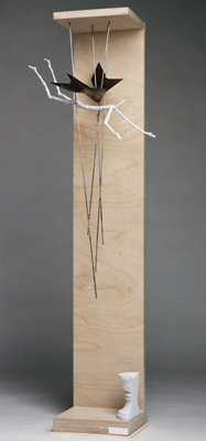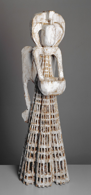 Leus Taufengel ist aus frei geformten Aluminium-Drahtgewebe gefertigt. Luftig leicht schwebt er mit seinen weit ausgebreiteten Flügeln. Alles Körperhafte und Feste einer Skulptur scheint diese Figur hinter sich gelassen zu haben. „Hauptsächlich besteht er eigentlich aus Luft“, beschreibt Leu seine Arbeit. Für ihn sei „Himmelskörper“ viel mehr „eine flüchtige Erscheinung als statische Form“. Durch das Material würde die Wahrnehmung des Engels sehr von den jeweiligen Lichtverhältnissen abhängen und seiner „Erscheinung“ werde so stets etwas Flüchtiges und Unfassbares anhaften.